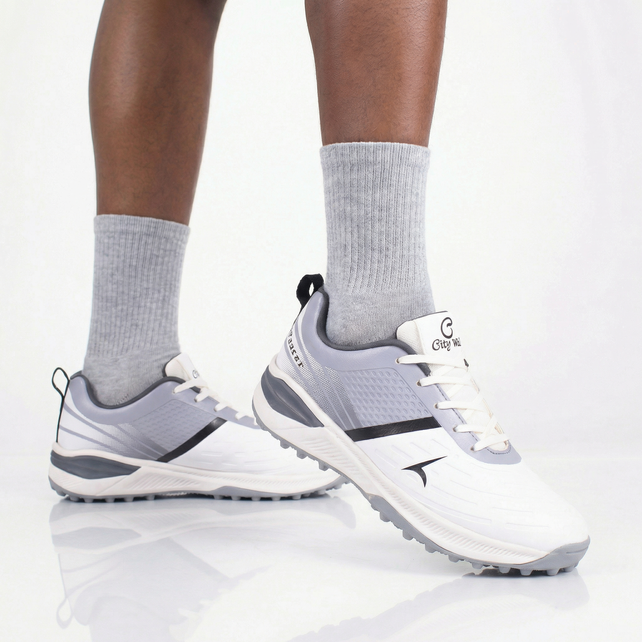 The City Walk AeroGrip Turf Trainer – SPC068 is engineered for speed, control, and all-day comfort on artificial turf and hard ground surfaces. Featuring a lightweight build, responsive cushioning, and a multi-stud rubber outsole, this trainer is perfect for football training, casual sports, and active everyday wear. Clean grey-and-white styling gives it a sharp, modern, athletic look.