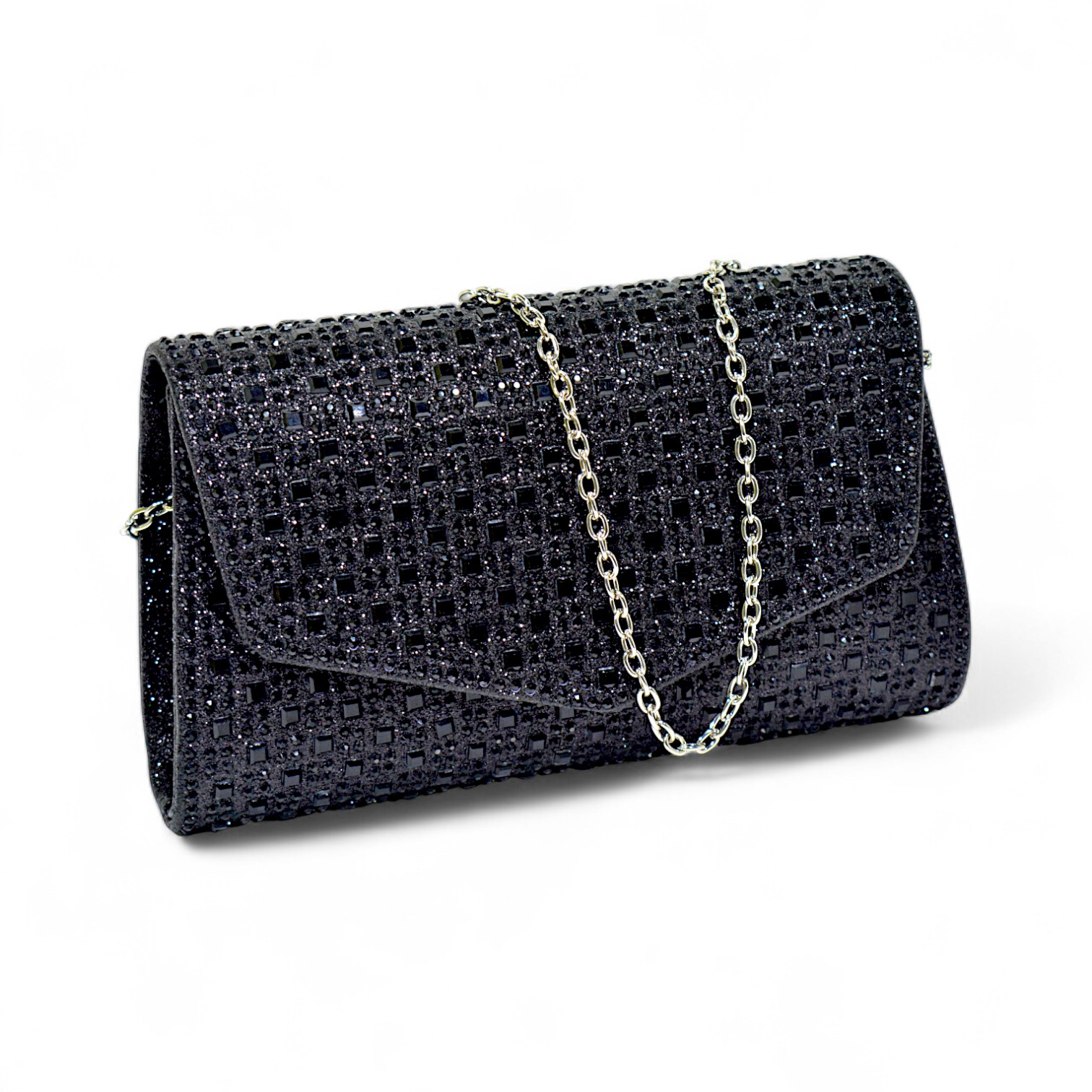 A dazzling evening companion that brings out your glamorous side. The Elegance Rhinestone Clutch MATP574 is designed to make a statement with its sparkling rhinestone grid pattern, versatile chain strap, and sleek envelope silhouette.