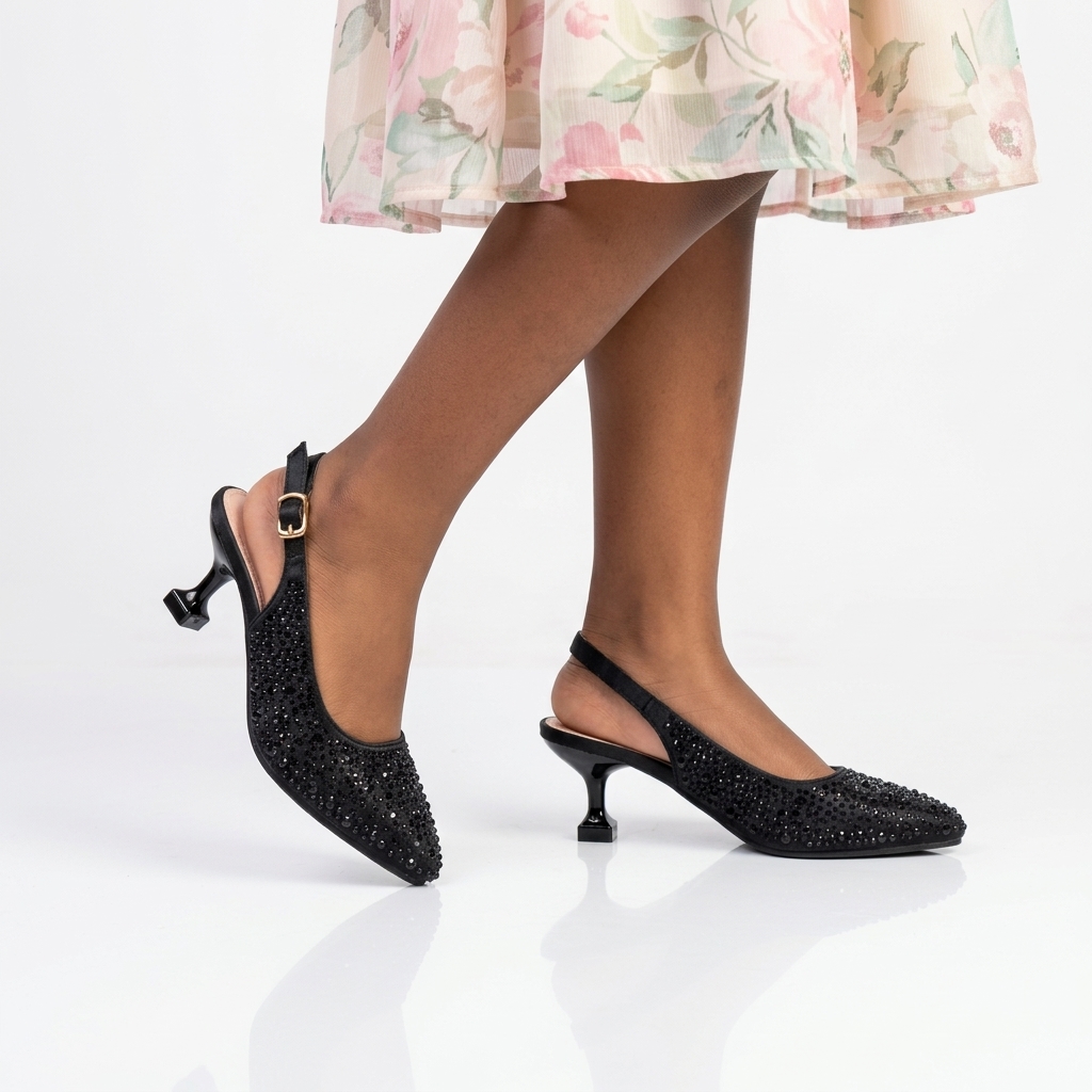 Shine with every step in the KD1796 Crystal Slingback Heels—crafted with dazzling embellishments and a sleek silhouette for timeless elegance and standout style.