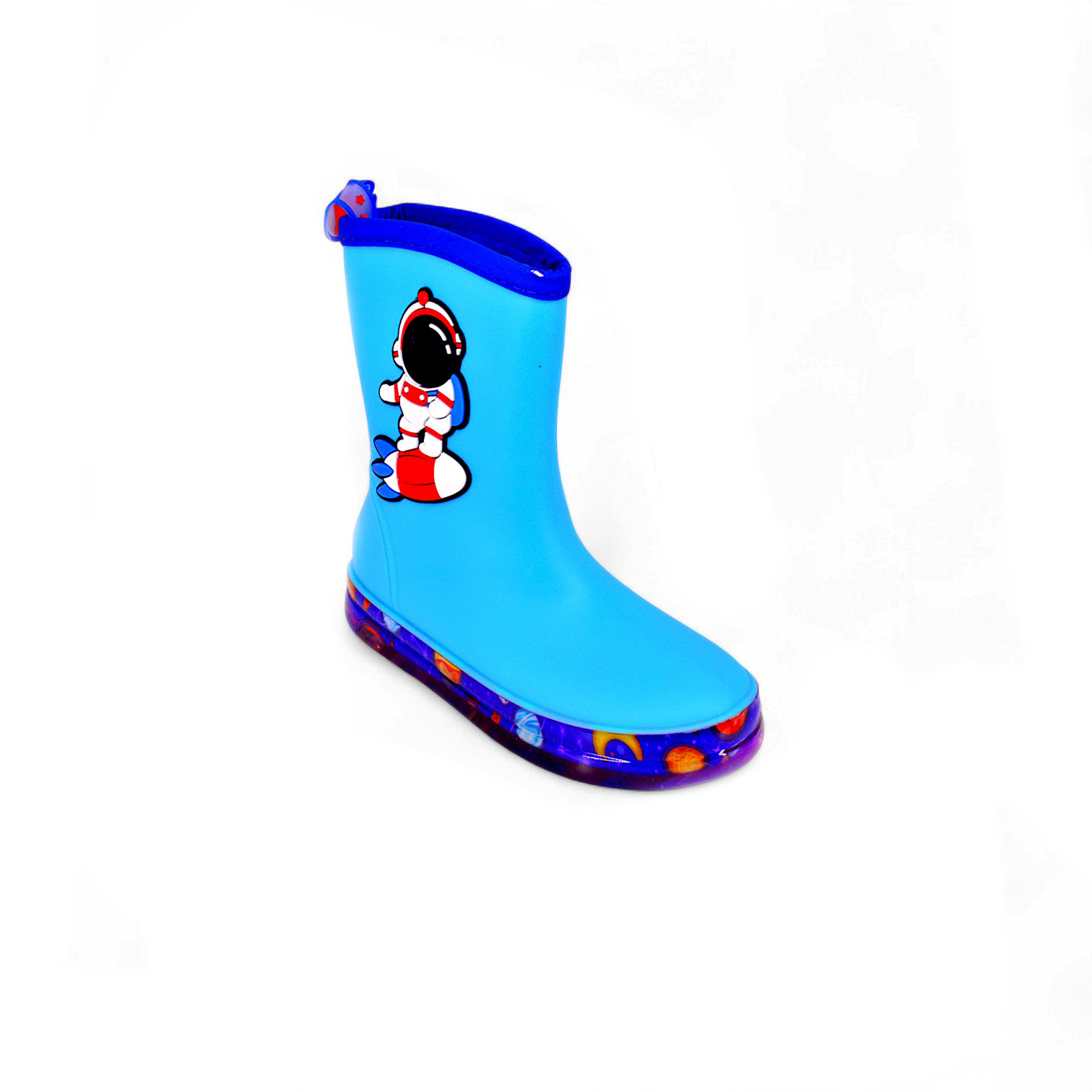 Let your little ones jump, play, and explore without worry! The GBT024 Kids Cartoon Gumboots are designed to keep tiny feet dry and happy through every puddle and rainy adventure. Made from durable, waterproof rubber, these boots feature playful 3D cartoon characters that make rainy days extra fun, from brave astronauts to adorable fairies. The soft inner lining ensures all-day comfort, while the anti-slip sole keeps every step steady, whether at school or on weekend strolls. Lightweight, flexible, and easy to clean, these gumboots are the perfect mix of style, safety, and smiles.
