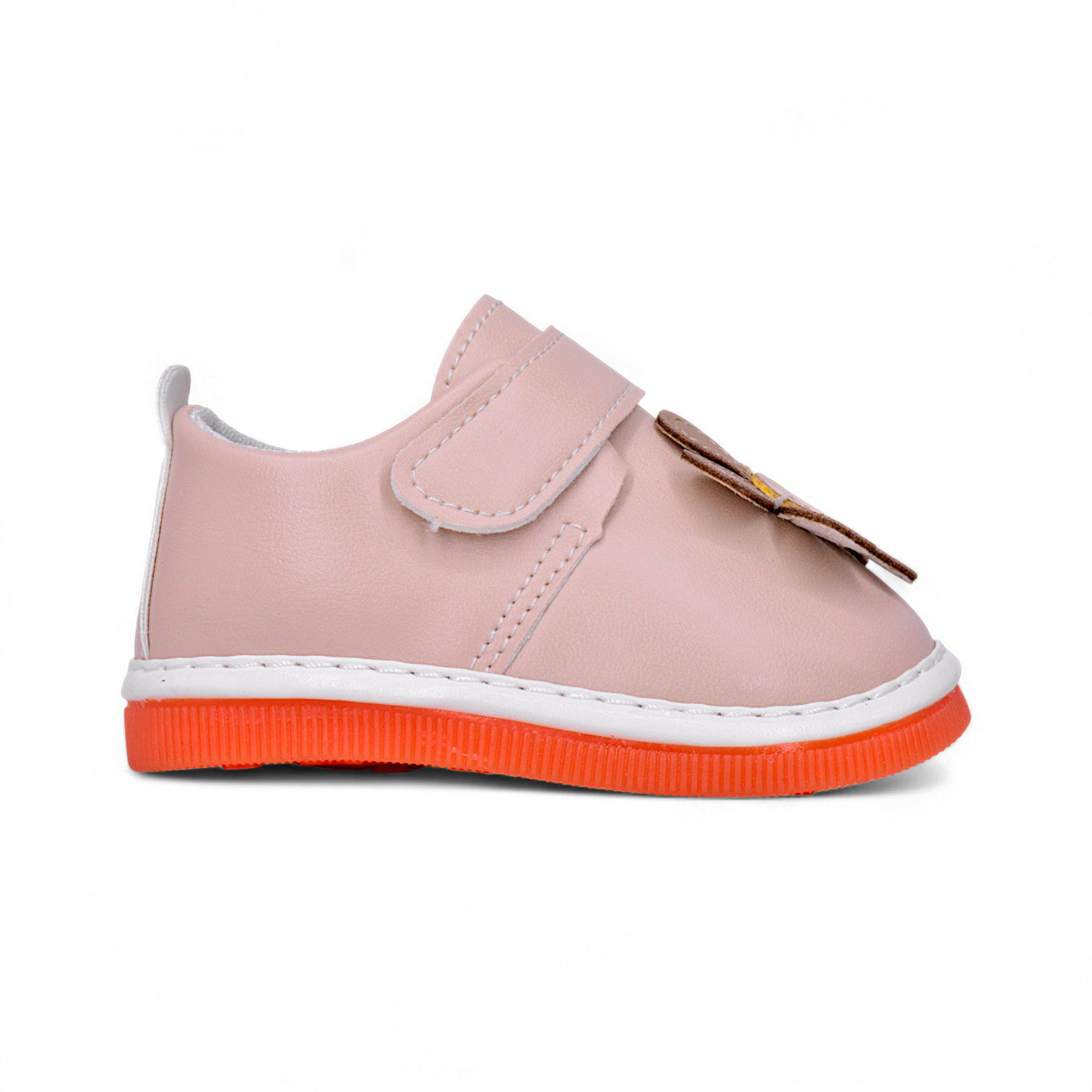 Let every step bloom with joy! The KD1722 Floral Joy Baby Shoes are crafted to keep your little one’s feet cozy, stylish, and supported. Designed with a cute flower applique, these shoes bring a touch of sweetness to any outfit — from playdates to family outings. Made with soft synthetic leather and a padded inner lining, KD1722 ensures gentle comfort for delicate feet. The Velcro strap provides a snug and adjustable fit, while the orange non-slip sole keeps each step safe and steady. Available in pink and peach tones, these shoes are the perfect blend of charm, comfort, and durability.