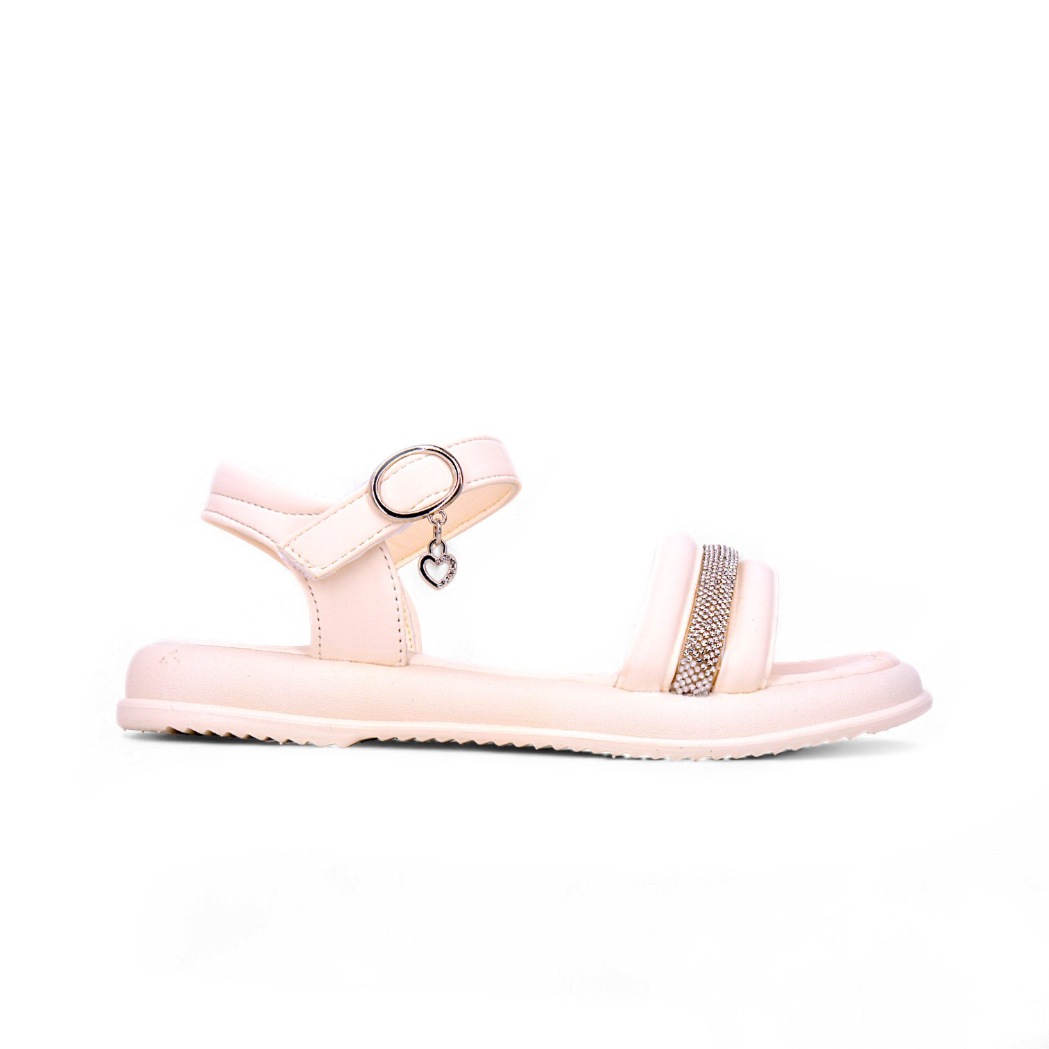 Crafted with care, the KD1738 Sparkly Girls Sandals come with a soft cushioned insole for comfort that lasts all day. The adjustable ankle strap provides a secure fit, while the metallic ring and dangling heart charm add a playful yet sophisticated finish. Whether for weekend outings, parties, or special events, these sandals promise effortless style and all-day ease.