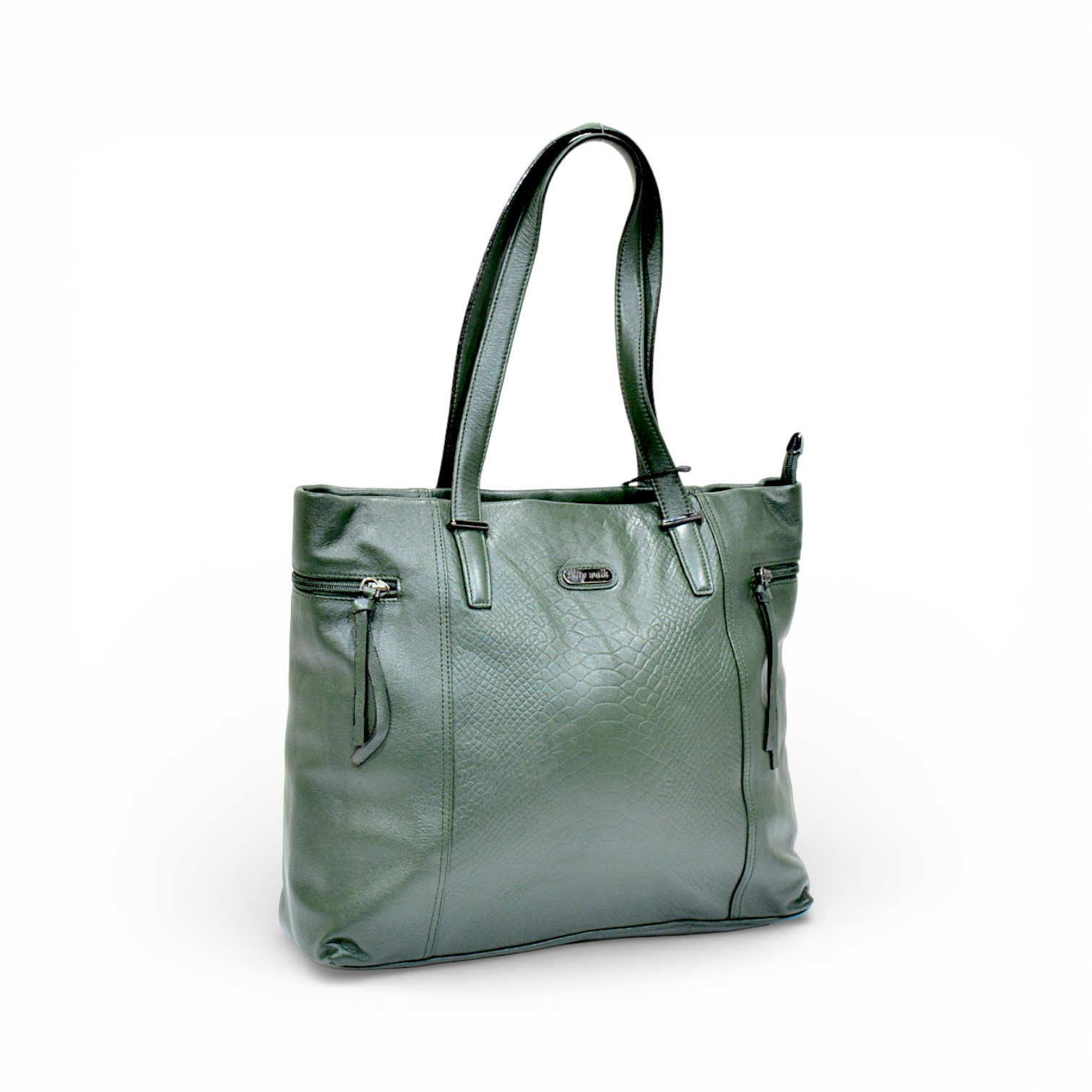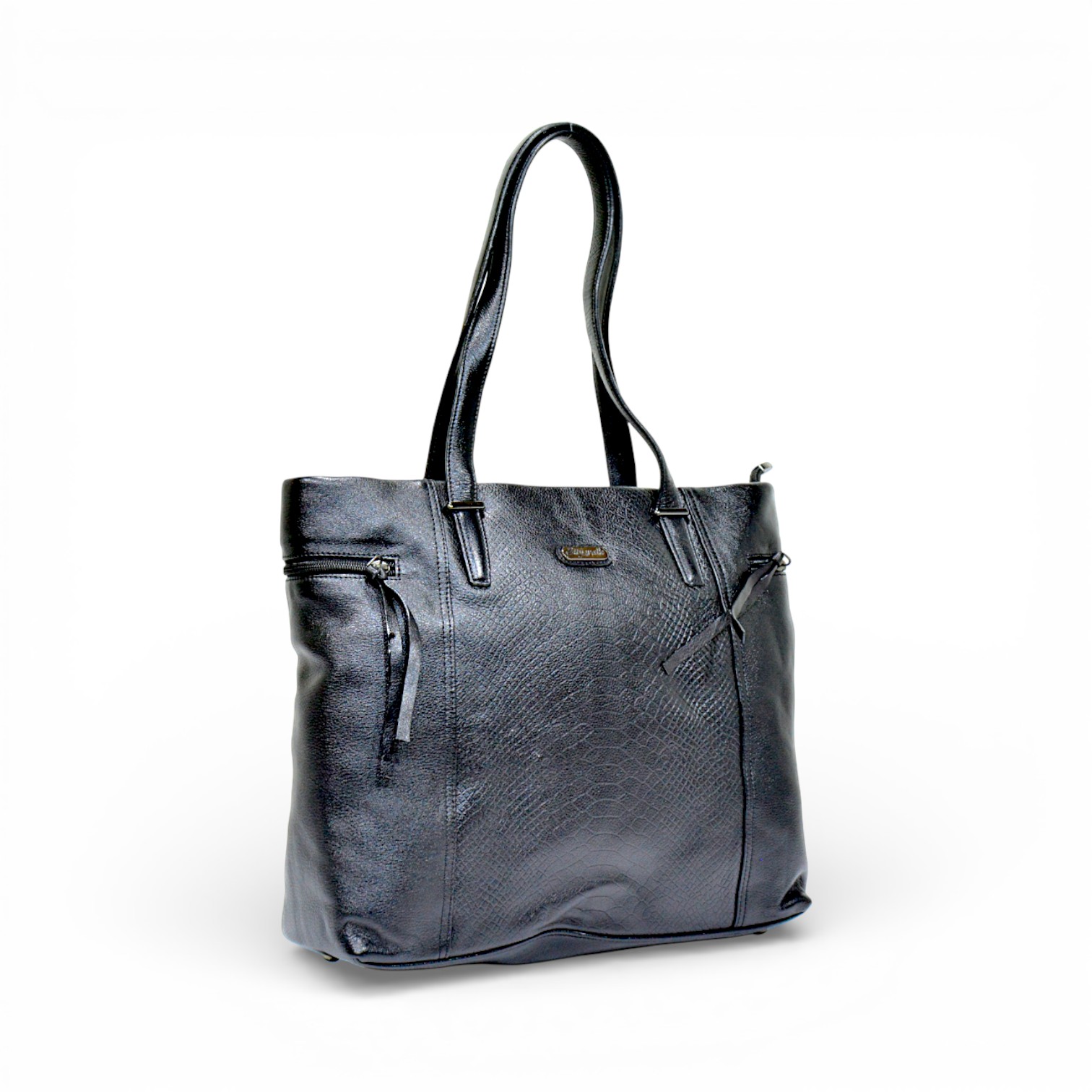 The HB1076 Leather Tote Bag is a sophisticated everyday essential designed for women who appreciate refined details and practical design. Designed for functionality, the bag includes two zippered side pockets, each finished with a stylish string pull for easy access. A small oval-shaped metal logo placed discreetly on the front adds a touch of luxury and brand identity. With its spacious interior and polished structure, the HB1076 is perfect for work, meetings, shopping, or daily outings.