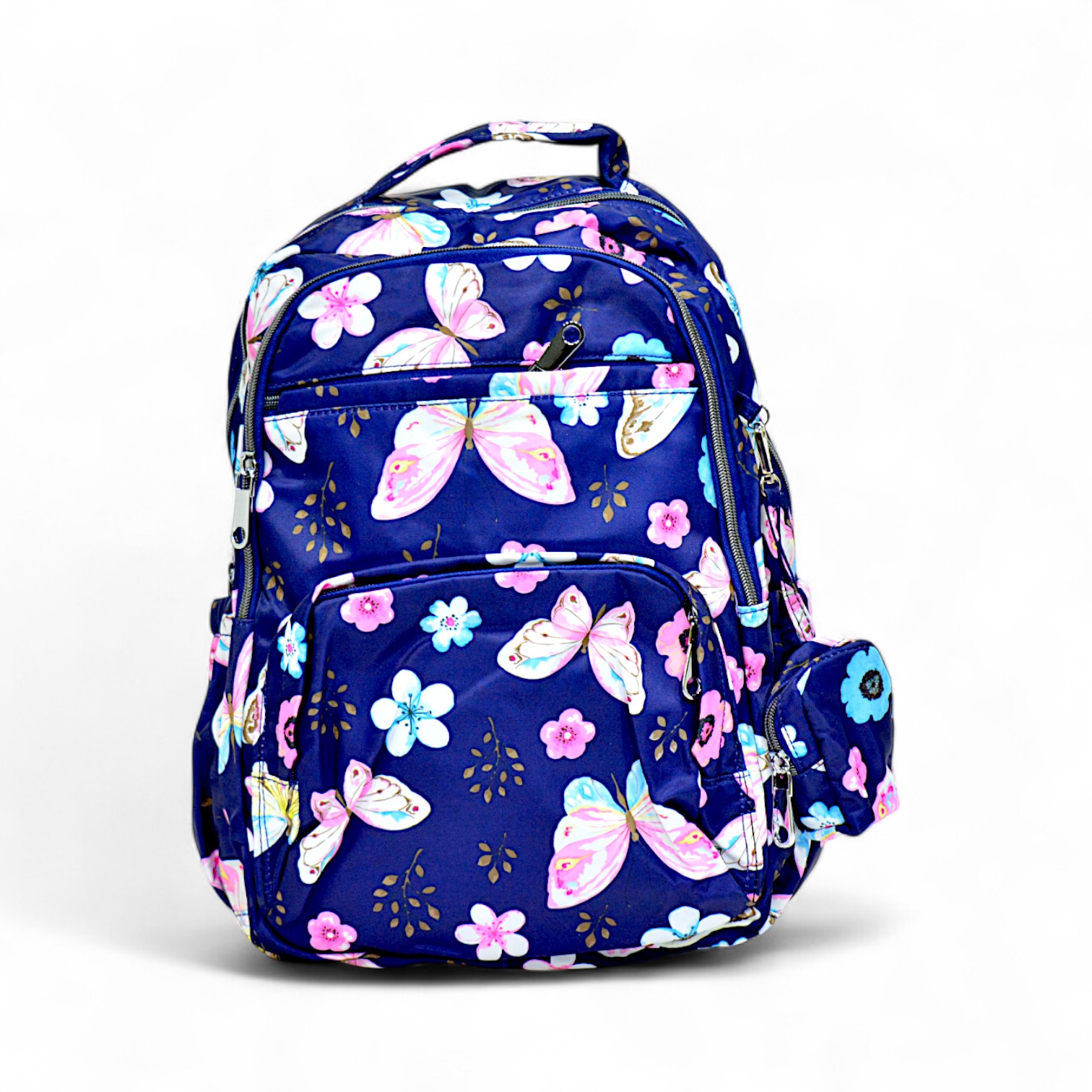 Brighten up your school days with the Model SCH977 Stylish School Bag, designed with a vibrant mix of floral and butterfly prints that combine durability with elegance. Perfect for students who want to carry their essentials in style, this school bag offers ample storage, comfort, and premium quality leather construction.Crafted from high-grade leather with a smooth finish, this school bag is built for both durability and functionality. The multicolor floral and butterfly design makes it ideal for young learners and teens who love a fun yet practical accessory. With multiple compartments and reinforced zippers, SCH977 ensures your books, stationery, and gadgets stay secure and organized throughout the day.