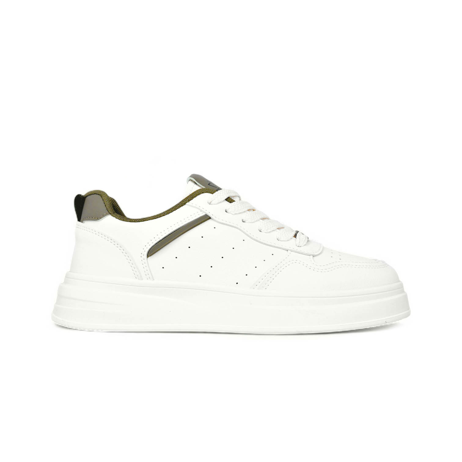 SPT477 Men’s Low-Top Sneakers – Classic White with Navy & Olive Accents