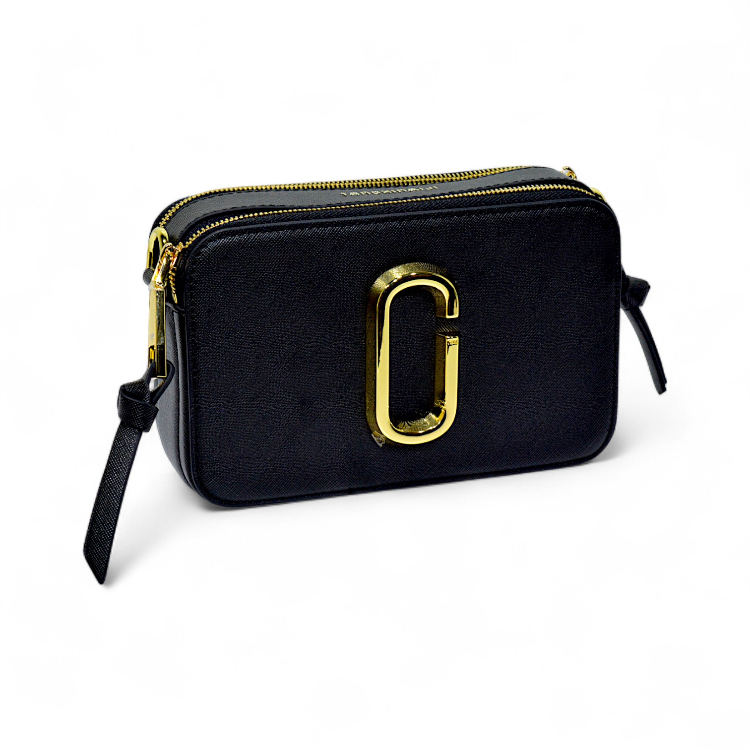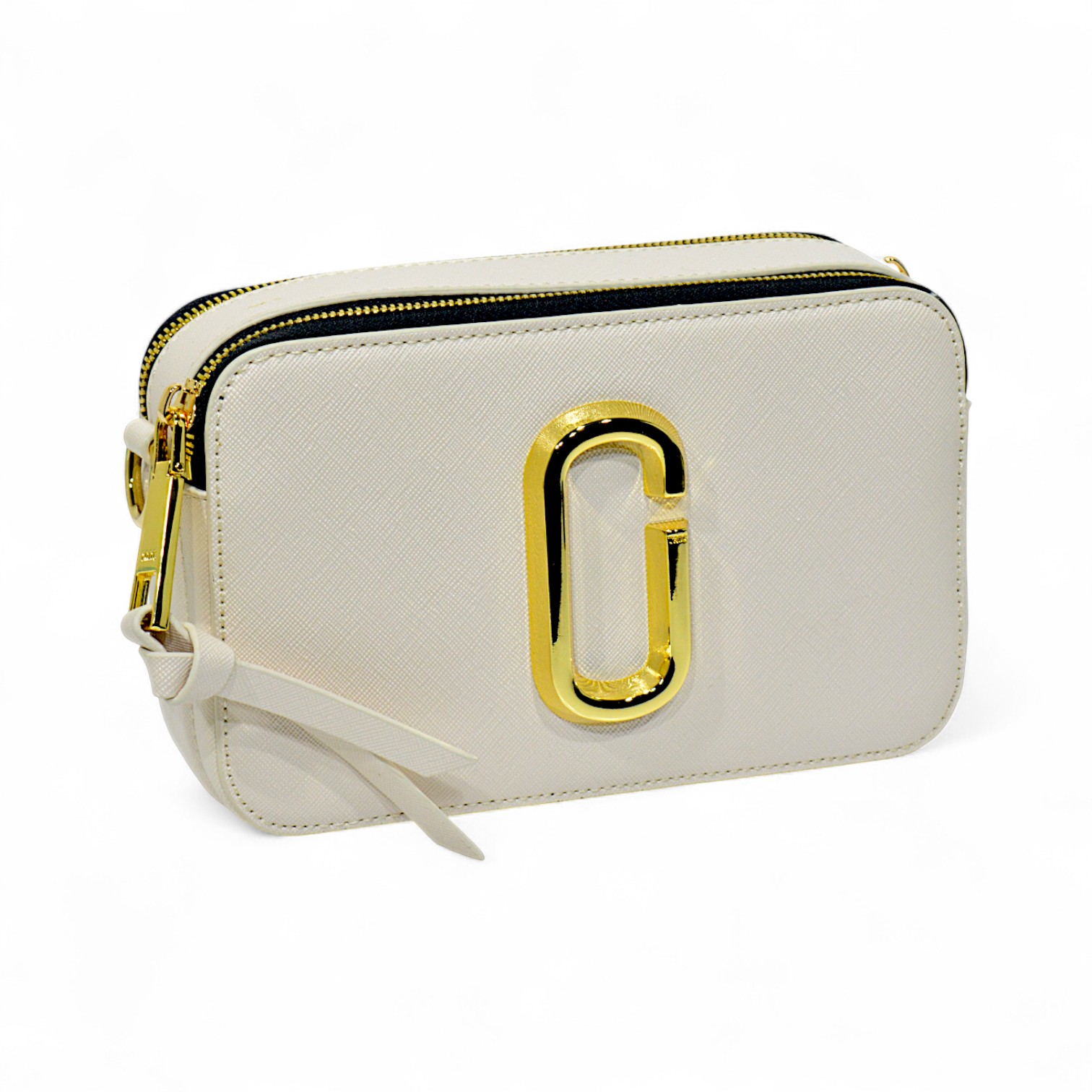 Design: Dual-zip compartments with gold metal detailing